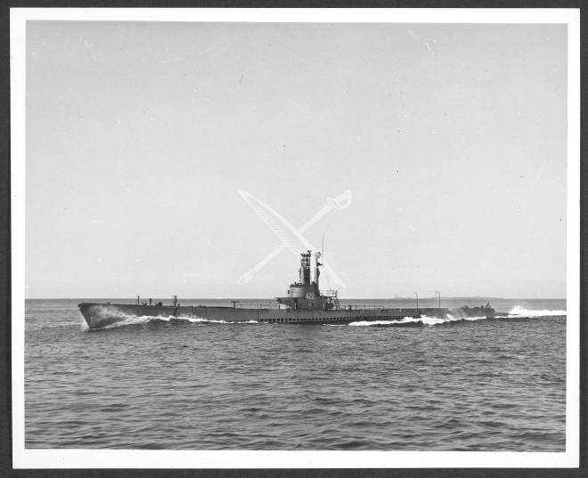 Port bow view of the USS Toro (SS-422) underway in the Atlantic.