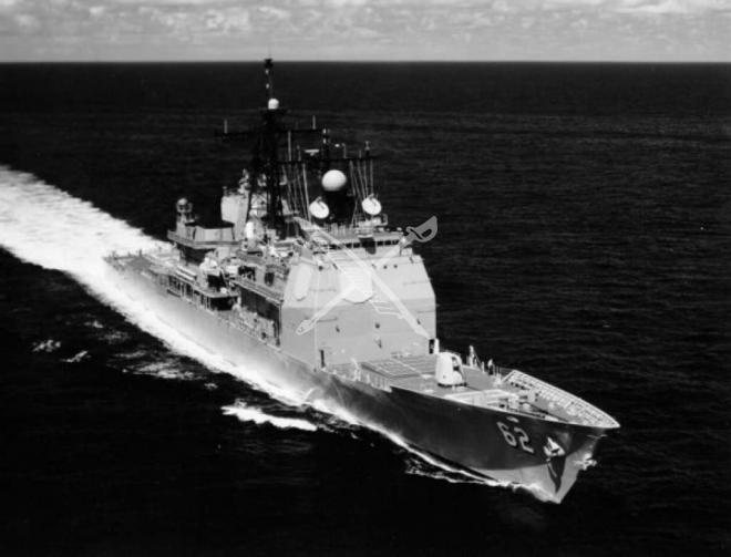 The U.S. Navy cruiser USS Chancellorsville (CG-62) taken on 9 November 1989 enroute to the Panama Canal.
