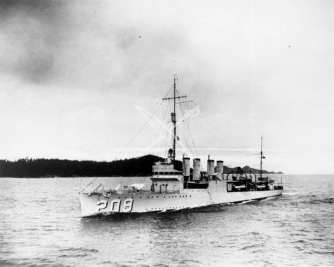The U.S. Navy destroyer USS Long (DD-209) shown on an Alaskan cruise before World War II. Later redesignated DMS-12.