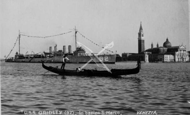 The U.S. Navy destroyer USS Gridley (DD-92) The photo was taken on July 4, 1919, while the USS Gridley was in the harbor of Venice, Italy.