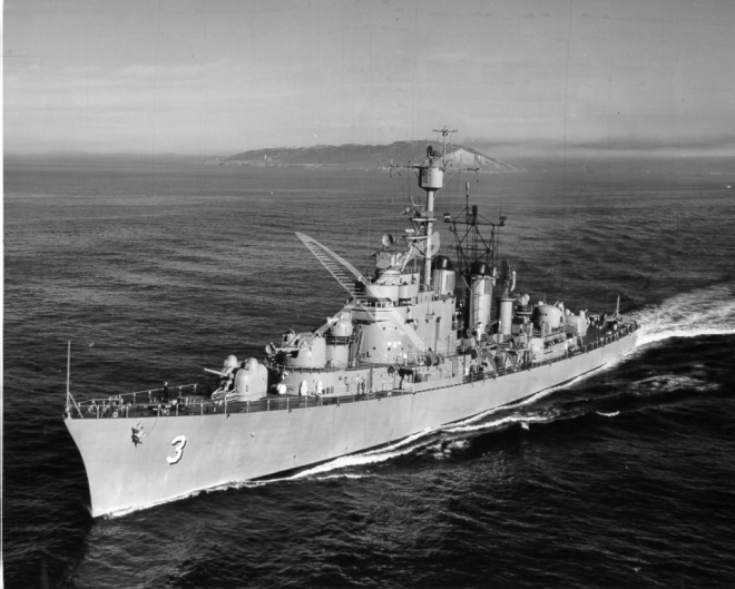 The U.S. Navy destroyer frigate USS John S. McCain (DL-3), 1-7-1958, off the coast of Point Loma, San Diego, California.