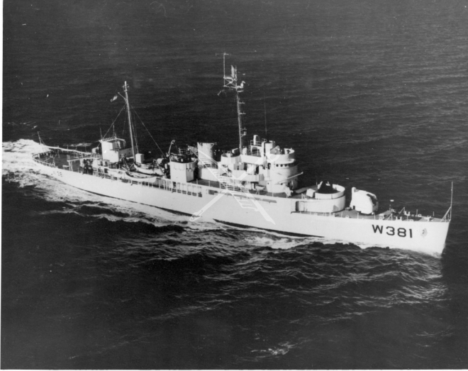 The U.S. Coast Guard Cutter, Barataria (WAVP-381) in 1959.