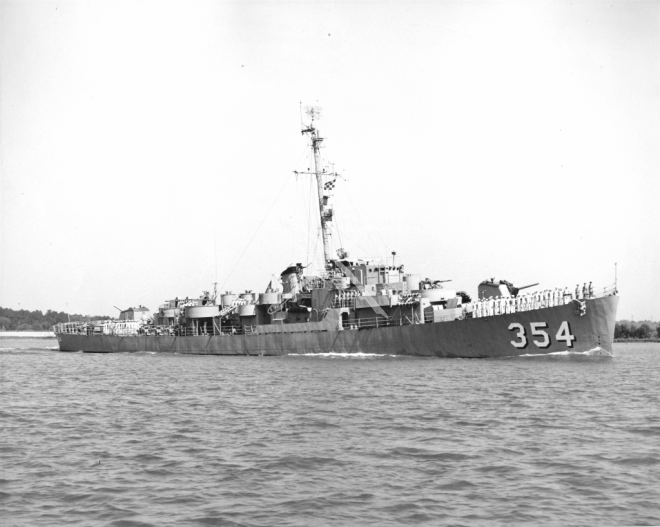 The U.S. Navy Destroyer Escort USS Kenneth M. Willett (DE-354).