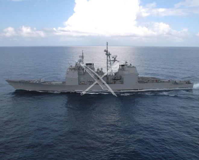 Bay of Bengal (Feb. 12, 2006) Ð The guided-missile cruiser USS Lake Champlain (CG 57) moves thru the Bay of Bengal after making a port call in Singapore. Lake Champlain is part of the Ronald Reagan Carrier Strike Group, currently
