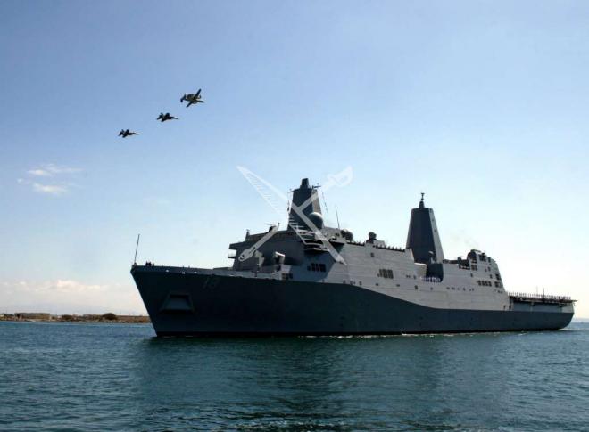 SAN DIEGO (Sept. 29, 2007) - An F/A-18C Hornet, F/A-18F Super Hornet and E-2C Hawkeye fly over the San Antonio-class amphibious transport dock USS New Orleans (LPD 18) during the cityÕs Sea and Air Parade. The annual event, whi