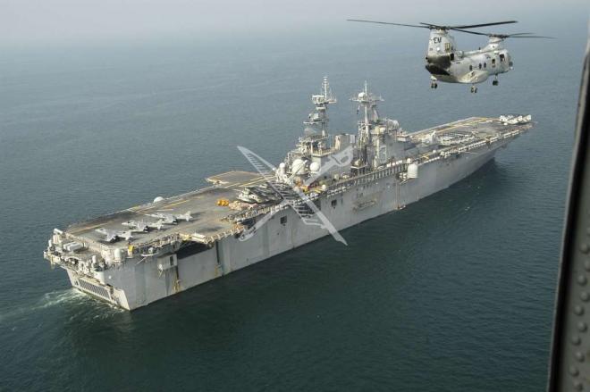 071201-N-5142K-134 BAY OF BENGAL (December 1, 2007) A CH-46E Sea Knight nears the amphibious assault ship USS Kearsarge (LHD 3) while returning from a relief mission in Pahoraghata, Bangladesh. Kearsarge and the embarked 22nd Marine Expeditionary Unit (