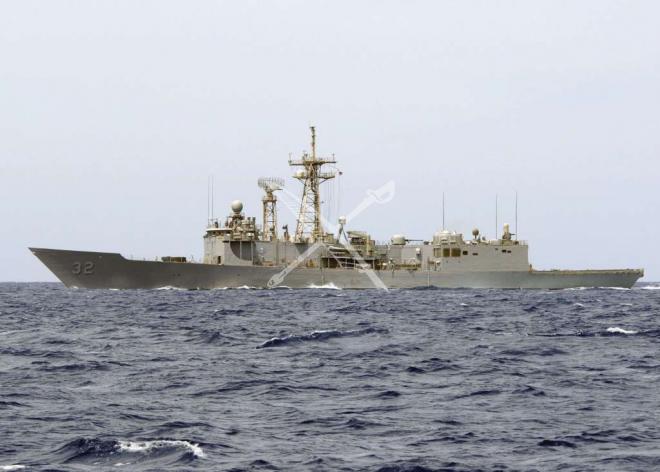 MEDITERRANEAN SEA (April 17, 2008) The guided-missile frigate USS John L. Hall (FFG 32) sails the Mediterranean Sea to participate in a visit, board, search and seizure exercise as a launching platform for rigid hull inflatable boats