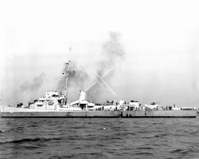The U.S. Navy destroyer escort USS Loy (DE-160), 10 March 1944.