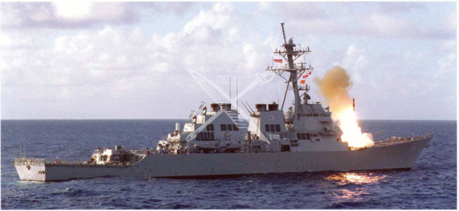 USS Paul Hamilton (DDG-60) launches a missile from a forward cell during a missile exercise near the Hawaiian Islands in 1995.