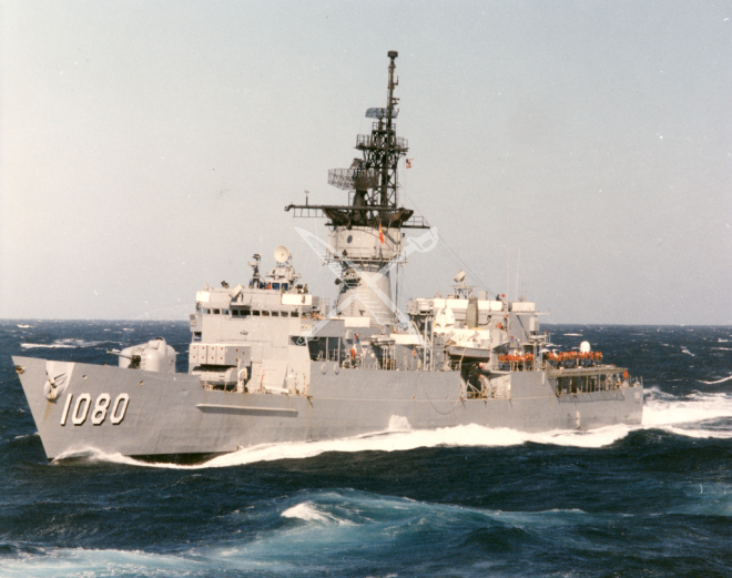 U.S. Navy Fast Frigate USS Paul (FF-1080) operating in the Mediterranean Sea