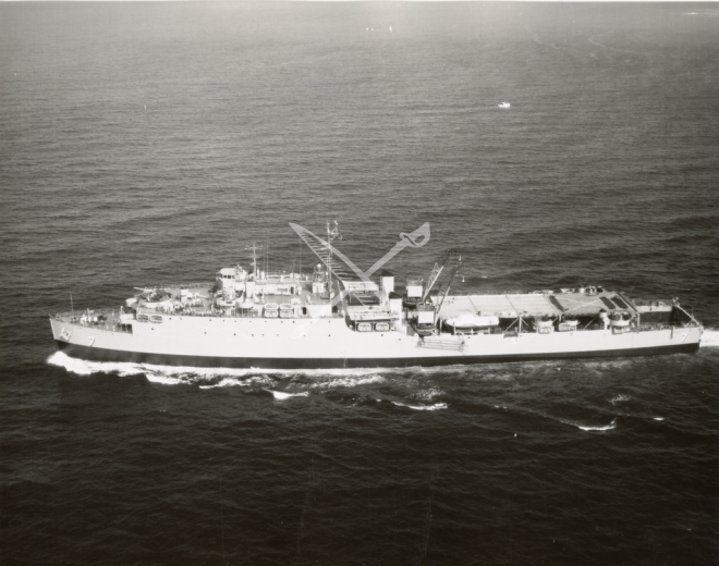 U.S. Navy Landing Ship Dock USS Oak Hill, off Point Loma, San Diego, August 1, 1957.