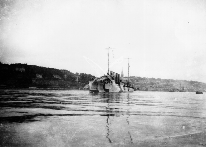 The U.S. Navy destroyer USS Davidson (DD-86). WWI era photo taken around Queenstown, Ireland.